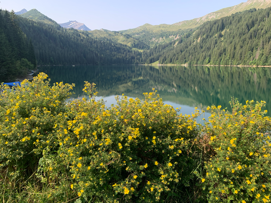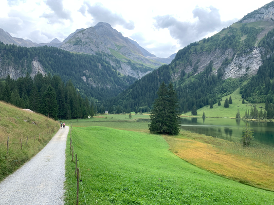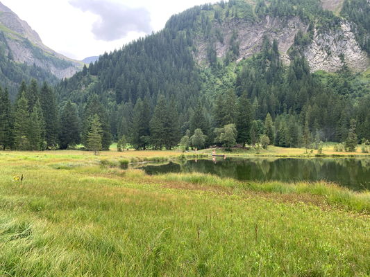 Bei ungewohnt kühlen 14 Grad nach Feutersoey und rechts hoch dem Tschärzisbach entlang bis zum wunderschönen Arnensee (1542).