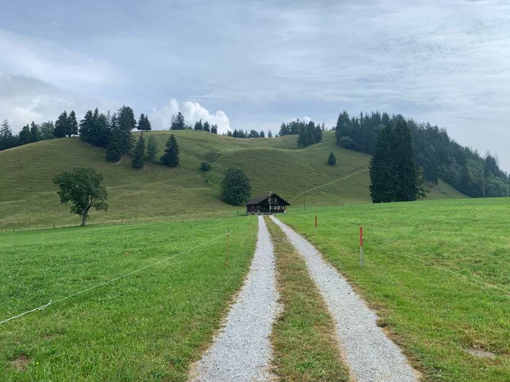 Heute gehts trocken und etwas kühl los. Über Schönried, Saanenmöser nach Zweisimmen und weiter auf der Route 9. Weil es immer noch trocken und freundlich ist bauen wir kurz nach Boltigen einen letzten Abstecher zum Rossberg (1136) ein und geniessen im gleichnamigen Gasthof einen ofenheissen Nussgipfel.